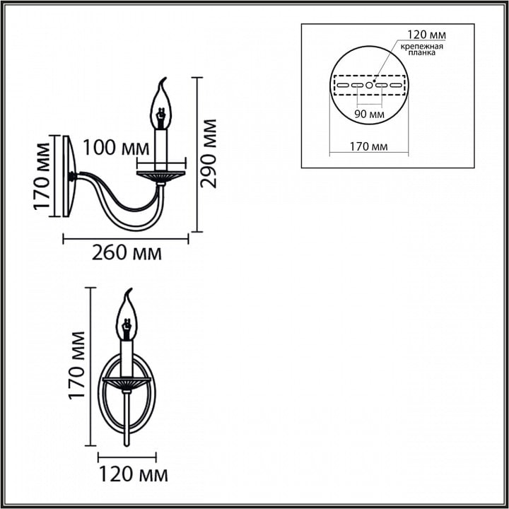 Обратите внимание, что лампы в комплекте не предусмотрены, что дает вам возможность выбрать именно тот источник света, который наилучшим образом соответствует вашему вкусу и потребностям. С весом всего 0.001 кг, установка бра не вызовет никаких трудностей.