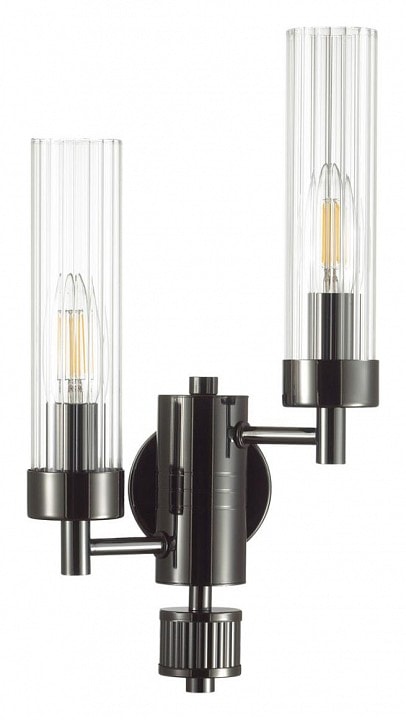 Светильник выполнен в современном стиле и отлично впишется в интерьер гостиной, спальни или коридора. Его компактные размеры (высота 345 мм, глубина 100 мм) позволяют разместить бра даже в небольших помещениях, а два цилиндрических плафона, направленных вверх, создают мягкое и приятное освещение.