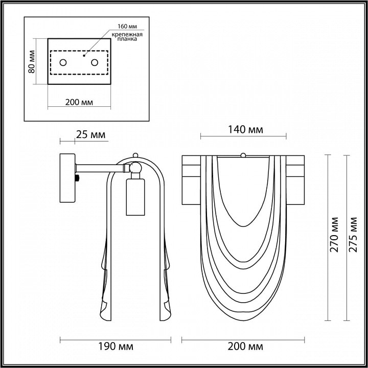 Бра оснащено одним плафоном, который направлен вниз, что создает мягкое и уютное освещение. Максимальная мощность лампы составляет 40 Вт, а тип цоколя - E14. Обратите внимание, что лампы в комплекте не идут, что дает вам возможность выбрать именно тот источник света, который идеально подойдет для вашего пространства.