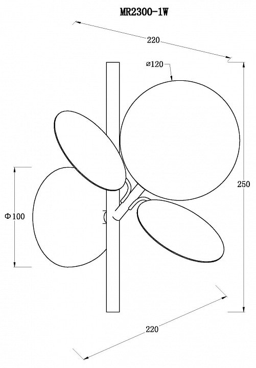 Бра MyFar Flavia отличается компактными размерами: высота составляет 250 мм, глубина и выступ — по 220 мм. Это делает его идеальным выбором для размещения на стенах в гостиных, спальнях или коридорах. Уникальная форма плафона в виде сферы добавляет изящества и гармонии в интерьер.