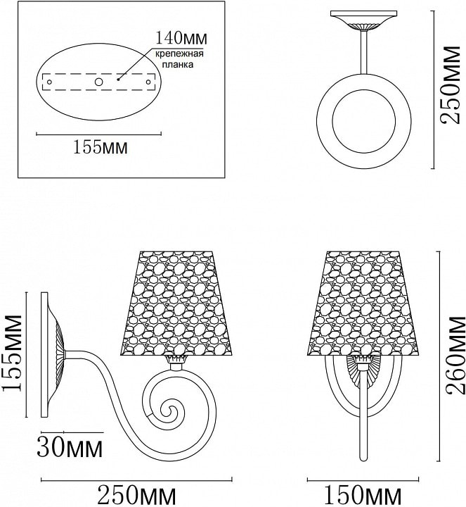 С глубиной и выступом в 250 мм, бра MyFar Luna легко впишется в любой интерьер, а его максимальная мощность лампы в 60 Вт обеспечит достаточное освещение для комфортного времяпрепровождения. Обратите внимание, что лампы в комплекте отсутствуют, но вы можете выбрать подходящую лампу с цоколем E14 по вашему вкусу.