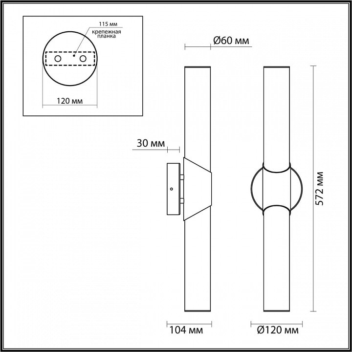 Бра имеет стильный модерн дизайн с цилиндрическими плафонами, которые направляют свет как вверх, так и вниз, создавая мягкое и равномерное освещение. Глубина и выступ бра составляют 104 мм, а высота — 572 мм, что позволяет легко интегрировать его в любой интерьер.