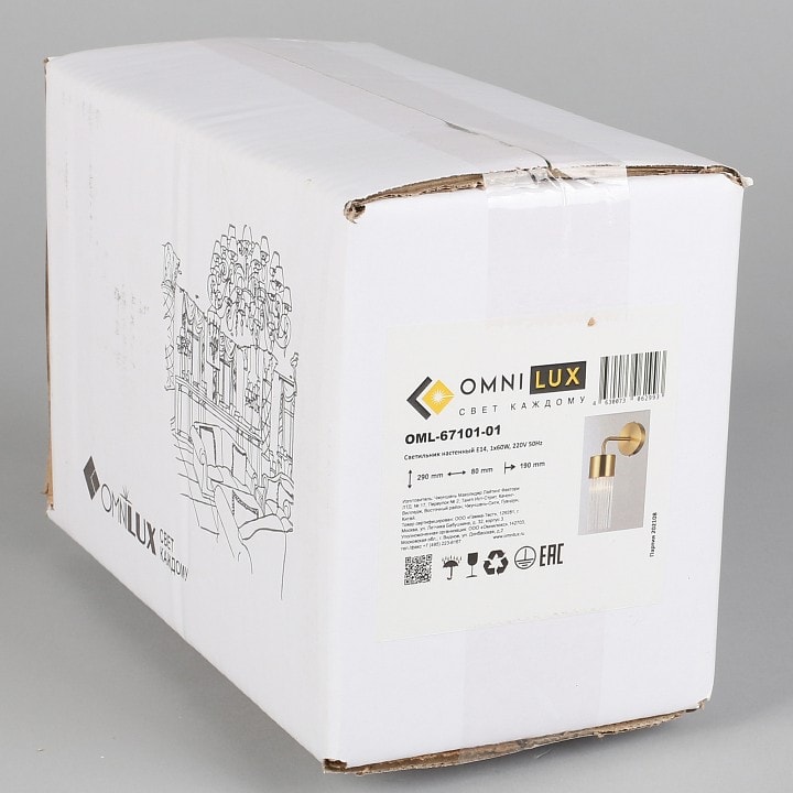 Бра Omnilux Cesana имеет степень пылевлагозащиты IP20, что делает его идеальным для использования в помещениях с низким уровнем влажности. Его легкий вес в 0.6 кг и компактные размеры упаковки (240x130x170 мм) обеспечивают простоту установки и транспортировки.