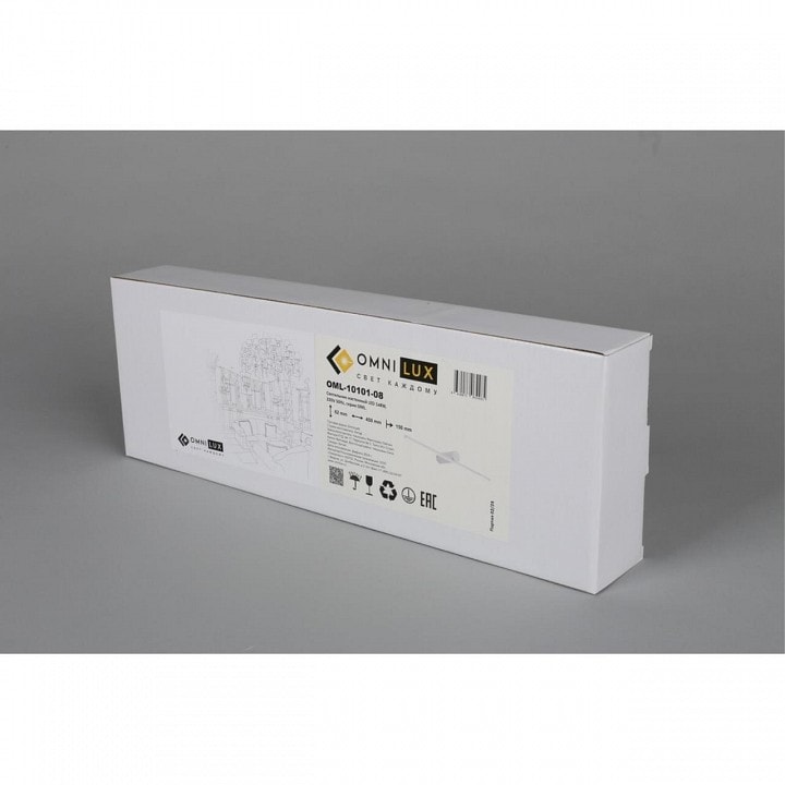 С уровнем пылевлагозащиты IP20, бра Omnilux Tenuta подходит для использования в помещениях с низким уровнем влажности. Размер упаковки составляет 460x65x160 мм, что делает его удобным для транспортировки и хранения.