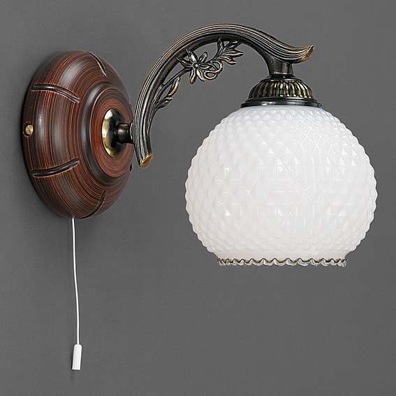 Произведенное в Италии, бра Reccagni Angelo сочетает в себе высокое качество и элегантный внешний вид. С глубиной и выступом в 260 мм, оно идеально впишется в любой интерьер, не занимая много места. Бра предназначено для установки на стену и оснащено шнуровым выключателем, что делает его использование максимально удобным.