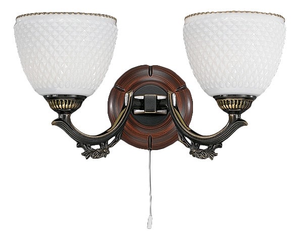 Бра Reccagni Angelo 8661 A 8661/2 также оснащено шнуровым выключателем, что обеспечивает удобство в использовании. Степень пылевлагозащиты IP 20 гарантирует надежность и долговечность светильника в условиях обычного домашнего использования.