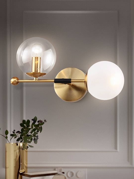 Светильник оснащен двумя плафонами, которые направлены вверх и вперед, создавая мягкое и равномерное освещение. Обратите внимание, что лампы в комплекте отсутствуют, но вы можете выбрать подходящие накаливания с цоколем E14, что позволит вам настроить освещение под ваши предпочтения.
