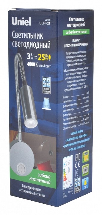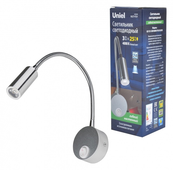 Бра Uniel ULT-F UL-00004177 работает от сети с напряжением 220 В и имеет степень пылевлагозащиты IP20, что делает его безопасным для использования в помещениях. В комплекте предусмотрен выключатель, что добавляет удобства в эксплуатации.