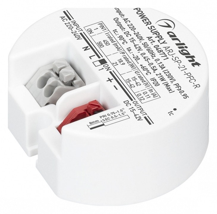 Блок питания Arlight ARJ-SP 048771 обладает степенью пылевлагозащиты IP 20, что обеспечивает надежную защиту от пыли и влаги в помещениях с низким уровнем воздействия внешней среды. Это делает его идеальным выбором для использования в домашних условиях, офисах и других помещениях.