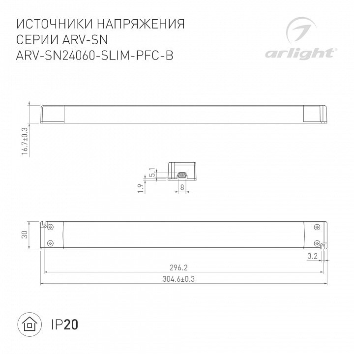 Блок питания Arlight ARV 022924(3) упакован в компактный размер 310x32x22 мм, что делает его удобным для транспортировки и хранения. Кроме того, он обладает степенью пылевлагозащиты IP 20, что обеспечивает надежную защиту от пыли и влаги в помещениях с нормальными условиями эксплуатации.
