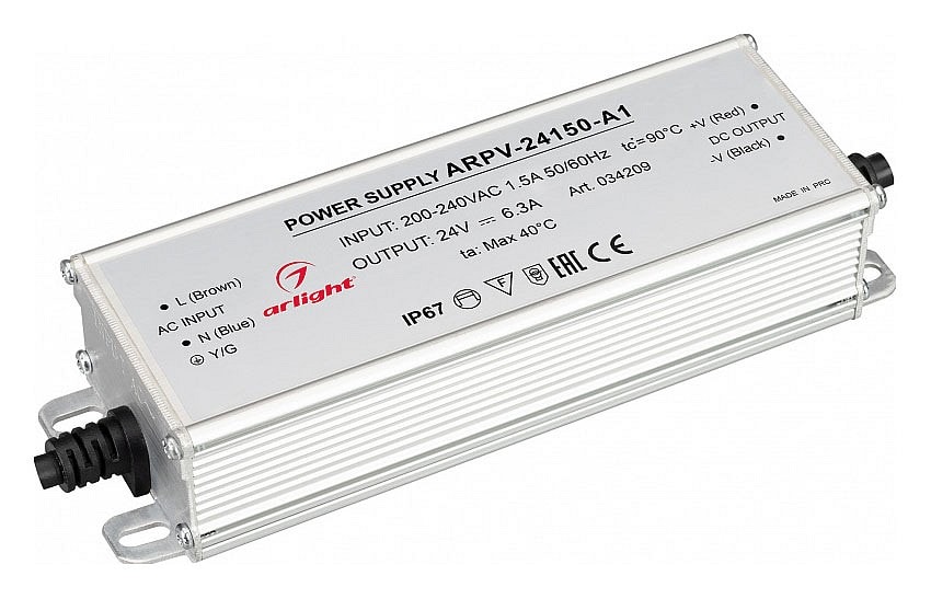 Блок питания Arlight ARPV 034209 отличается высокой степенью пылевлагозащиты IP 67, что позволяет использовать его в помещениях с повышенной влажностью и запыленностью. Это особенно важно для тех, кто ищет надежное оборудование для освещения или других электрических устройств в сложных условиях.