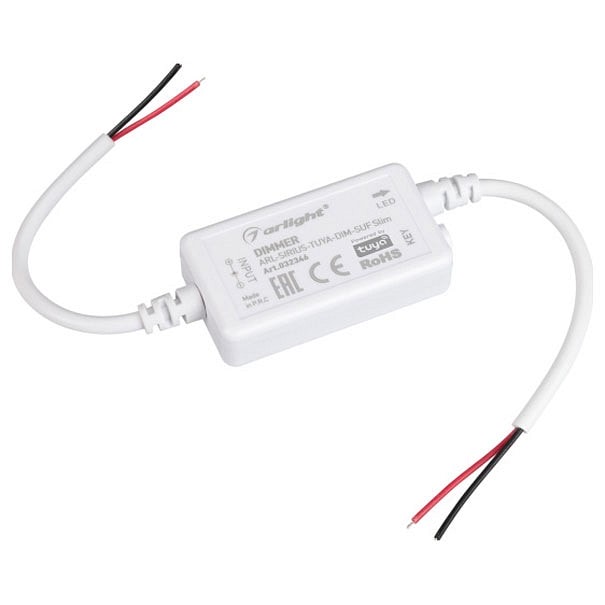 Произведенный в России, диммер Arlight сочетает в себе надежность и современный дизайн. Он работает при напряжении питания от 12 до 24 В, что делает его универсальным решением для различных типов светильников. Благодаря этому, вы сможете использовать его как с LED, так и с другими типами ламп.