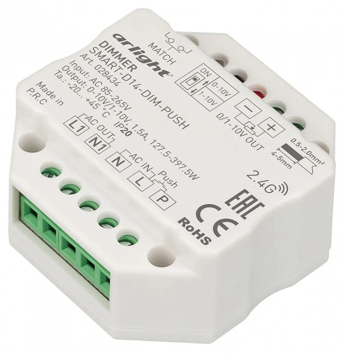 Контроллер-диммер Arlight SMART 028434 предназначен для работы с напряжением питания от 85 до 265 В, что делает его универсальным решением для различных типов освещения. С его помощью вы сможете легко регулировать яркость света, создавая комфортную атмосферу в любом помещении.