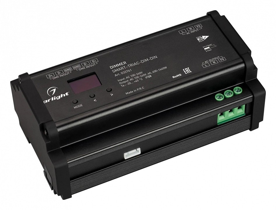 Контроллер-диммер Arlight SMART 033761 позволяет легко регулировать яркость освещения, что делает его незаменимым элементом в любом интерьере. С его помощью вы сможете создать уютную обстановку для отдыха или, наоборот, яркое освещение для работы. Устройство поддерживает напряжение питания 240 В и имеет степень пылевлагозащиты IP 20, что обеспечивает его надежную работу в различных условиях.