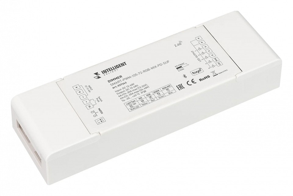 Контроллер-диммер Arlight TUYA 037343 предназначен для работы с напряжением питания от 12 до 48 В, что делает его универсальным решением для различных типов освещения. Вы можете легко подключить его к светодиодным лентам, лампам и другим устройствам, обеспечивая плавное регулирование яркости и создание нужного настроения в помещении.