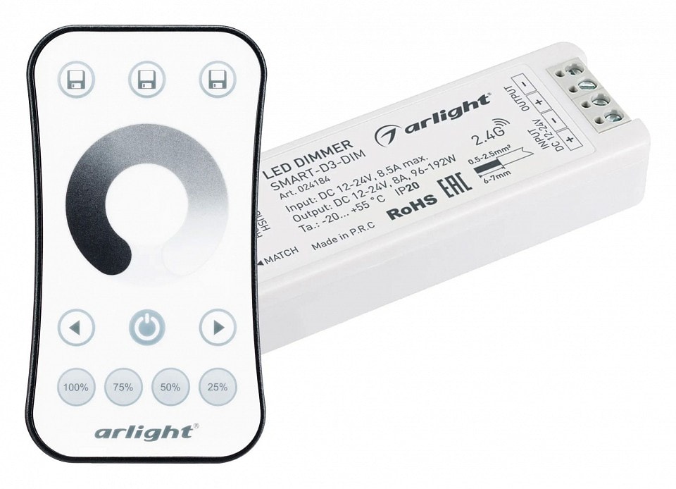 Контроллер-диммер Arlight SMART 034786 позволяет легко регулировать яркость освещения, создавая уютную атмосферу в любом помещении. С помощью пульта дистанционного управления вы сможете настраивать освещение, не вставая с дивана. Это особенно удобно для тех, кто ценит комфорт и хочет управлять освещением с максимальным удобством.