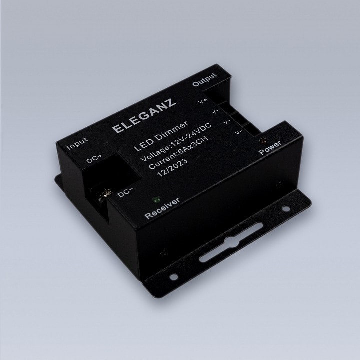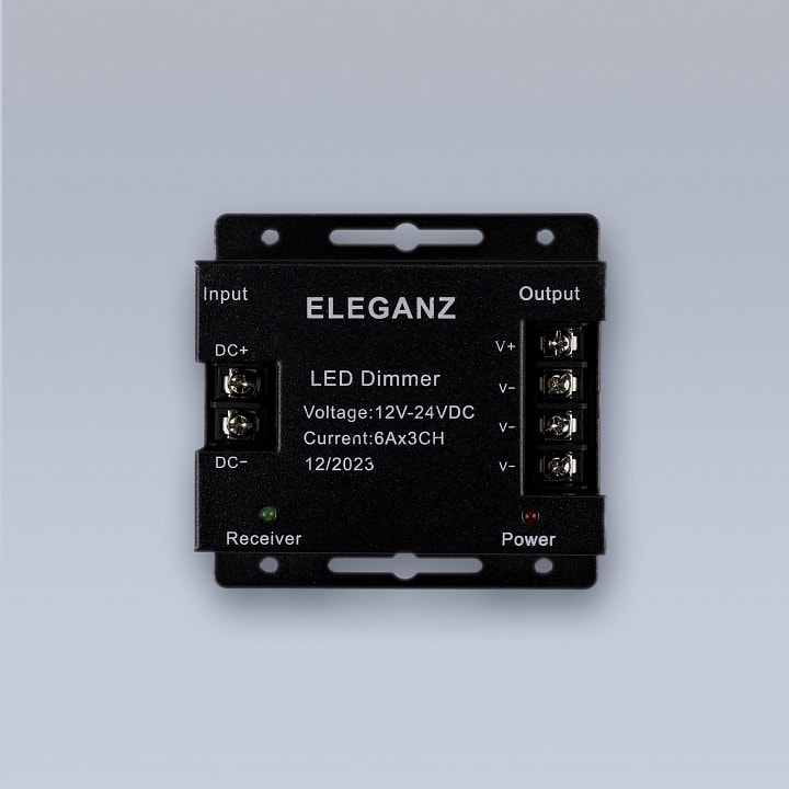 Контроллер-диммер Eleganz 1008 работает на напряжении 24 В и обеспечивает надежное и стабильное управление яркостью освещения. Благодаря наличию пульта ДУ, вы сможете легко регулировать уровень освещения, не вставая с места. Это особенно удобно для создания уютной атмосферы в вечернее время или для настройки освещения под конкретные задачи.