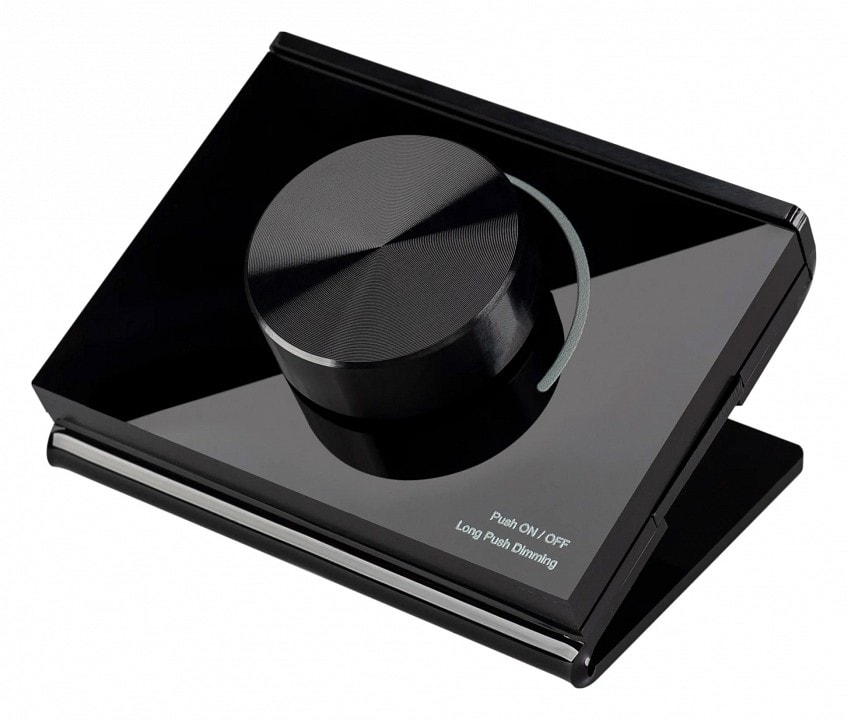 Панель-диммер имеет степень пылевлагозащиты IP20, что позволяет использовать его в помещениях с нормальными условиями эксплуатации. Он идеально подходит для размещения на столе, что делает его удобным и доступным для управления освещением в любой момент.
