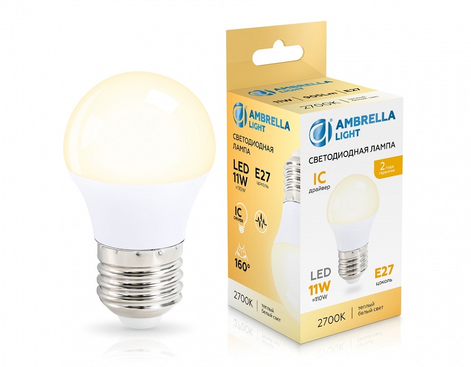 Светодиодная лампа Ambrella Light G45 E27 11Вт 2700K