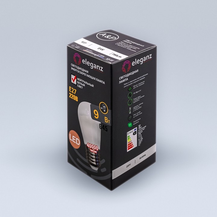 Эта модель имеет стандартный цоколь E27, что делает её совместимой с большинством светильников. Напряжение питания составляет 220 В, что обеспечивает стабильную работу лампы в любых условиях. Лампа Eleganz E27 9Вт идеально подходит для использования в жилых и коммерческих помещениях, обеспечивая яркое и равномерное освещение.