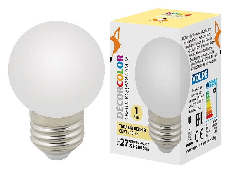 С мощностью всего 1 Вт и теплым светом с температурой 3000K, лампа Volpe обеспечивает мягкое и комфортное освещение, идеально подходящее для жилых помещений. Диаметр лампы составляет 45 мм, что делает её компактной и удобной для установки в различных светильниках с цоколем E27.