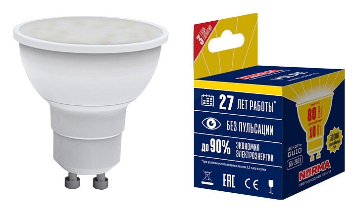 Лампа светодиодная Volpe GU10 10Вт 3000K - Эффективное освещение для вашего дома