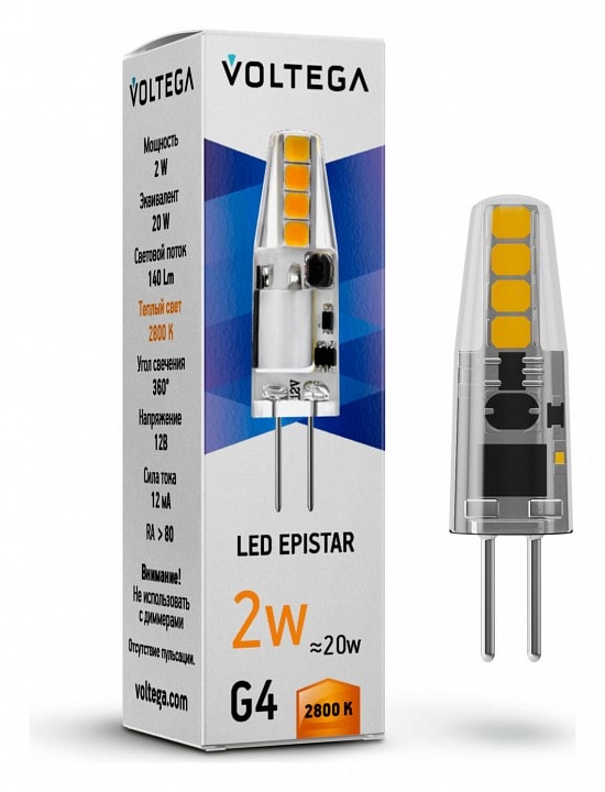 Светодиодная технология обеспечивает долговечность и экономию энергии, что делает лампу Voltega Capsule G4 не только стильным, но и практичным выбором. Масса лампы составляет всего 0.01 кг, что делает ее легкой и удобной в использовании.