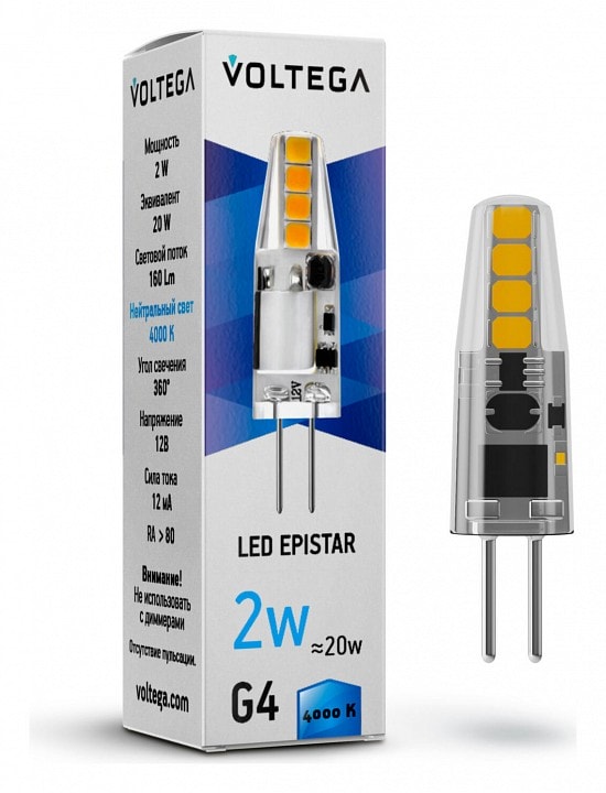 Лампа светодиодная Voltega Capsule G4 2Вт 4000K
