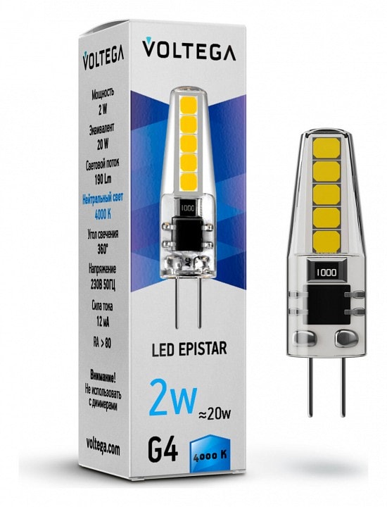 Лампа светодиодная Voltega Capsule G4 2Вт 4000K