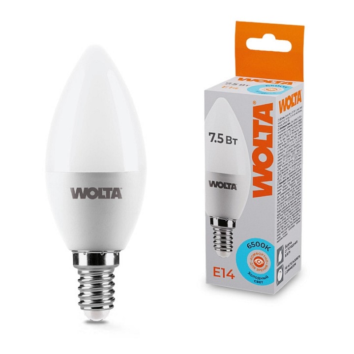 Светодиодная лампа Wolta E14 7.5Вт 6500K