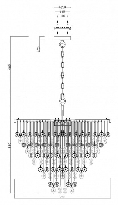 С диаметром 700 мм и высотой 690 мм, люстра идеально впишется в любое пространство, добавляя элегантности и шарма. Стиль модерн делает ее универсальной, подходящей как для классических, так и для современных интерьеров. Люстра рассчитана на 9 ламп с максимальной мощностью 40 Вт каждая, что обеспечивает общее освещение до 360 Вт.