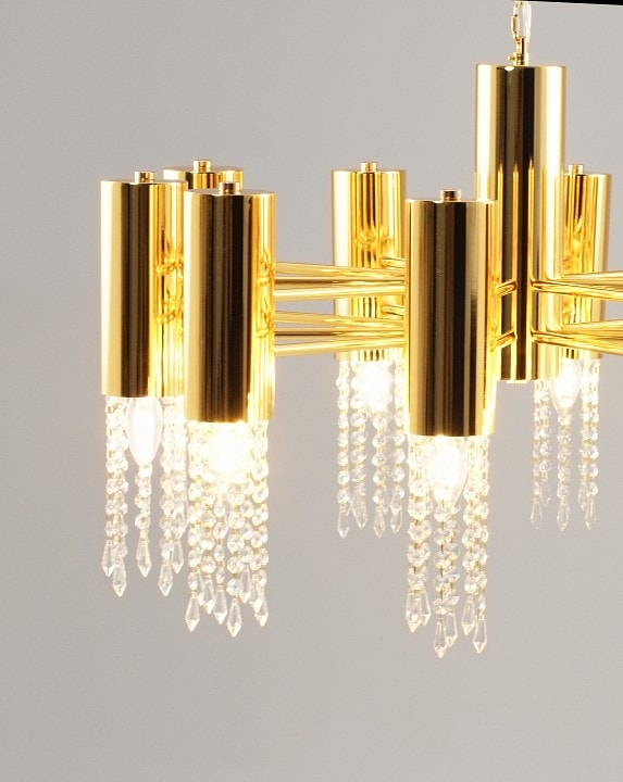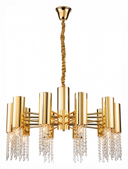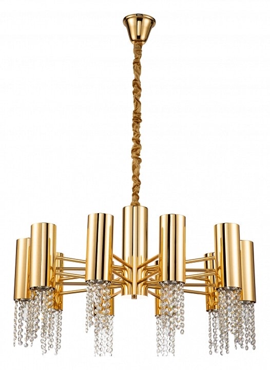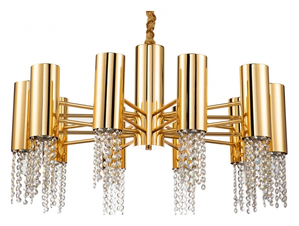 С диаметром 800 мм и высотой 500 мм, люстра прекрасно впишется в пространство, обеспечивая равномерное освещение. Она оснащена 10 плафонами, направленными вниз, что позволяет создать мягкий и комфортный свет. Каждый плафон имеет форму цилиндра, что добавляет изысканности и современности в общий вид светильника.