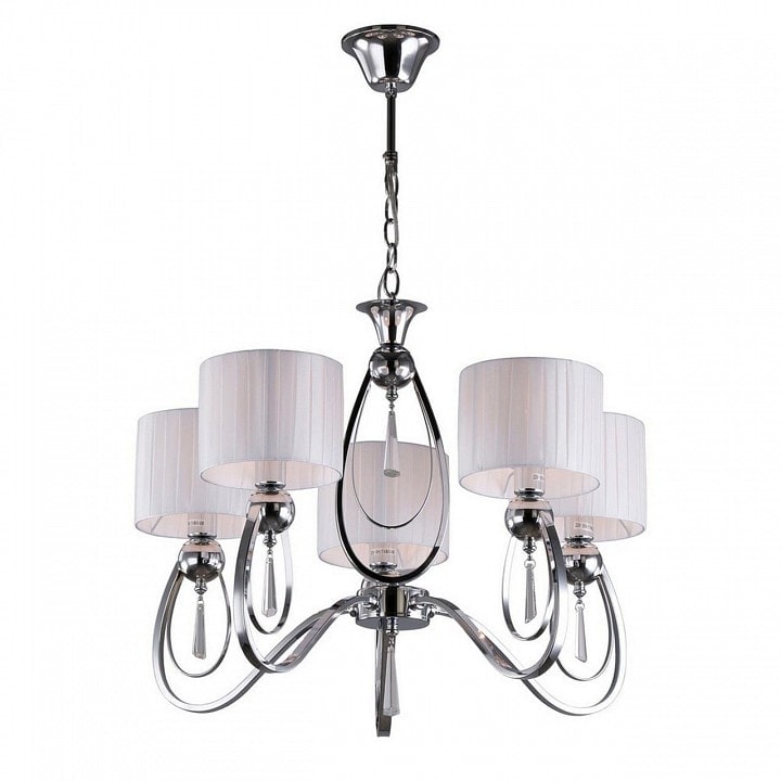 С диаметром 600 мм и высотой 450 мм, люстра идеально подходит для размещения в спальне, создавая мягкое и комфортное освещение. Она оснащена пятью плафонами, направленными вверх, что позволяет равномерно распределять свет по всему помещению. Обратите внимание, что лампы в комплекте отсутствуют, но максимальная мощность каждой лампы составляет 40 Вт, что дает возможность выбрать оптимальные источники света для ваших нужд.