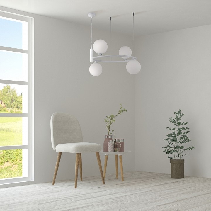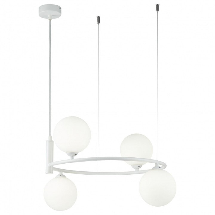 Люстра имеет высоту 340 мм и состоит из четырех плафонов, которые направлены вверх и вниз, обеспечивая равномерное распределение света. Каждый плафон выполнен в форме сферы, что добавляет изысканности и оригинальности в дизайн. Максимальная мощность лампы составляет 25 Вт, а общее количество ламп — 4, что позволяет достичь общей мощности в 100 Вт. Обратите внимание, что лампы в комплект не входят, и вы можете выбрать галогеновые лампы с цоколем G9 по своему вкусу.
