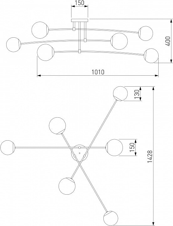 С шестью плафонами в форме сферы, люстра обеспечивает равномерное распределение света, создавая уютную атмосферу. Каждый плафон направлен в стороны, что позволяет осветить пространство максимально эффективно. Максимальная мощность лампы составляет 60 Вт, а тип цоколя — E27, что дает вам возможность выбрать лампы по вашему вкусу, включая энергосберегающие варианты.
