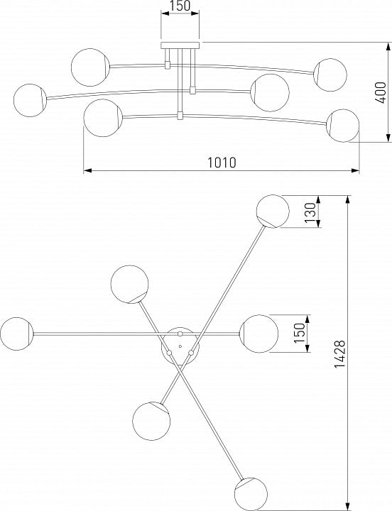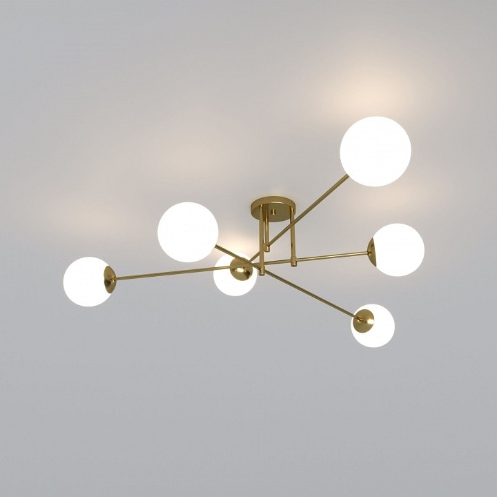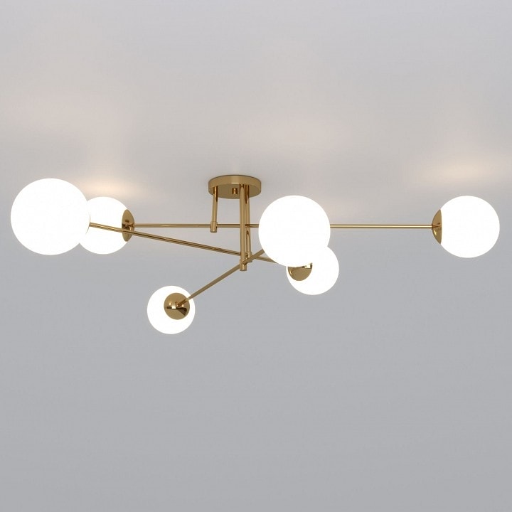 С высотой 400 мм и шестью плафонами, люстра обеспечивает равномерное освещение в помещениях, таких как гостиная. Плафоны имеют сферическую форму и направлены в стороны, что позволяет создать уютную атмосферу и подчеркнуть стиль вашего интерьера. Максимальная мощность лампы составляет 60 Вт, а тип цоколя — E27, что дает возможность использовать различные лампы накаливания.