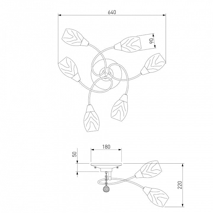 Люстра выполнена в современном стиле, что делает её универсальным элементом декора, подходящим для различных интерьеров. С шестью плафонами, направленными в стороны, она обеспечивает равномерное освещение и создает уютную атмосферу в помещении. Плафоны имеют объемную овальную форму, что добавляет изысканности и оригинальности.