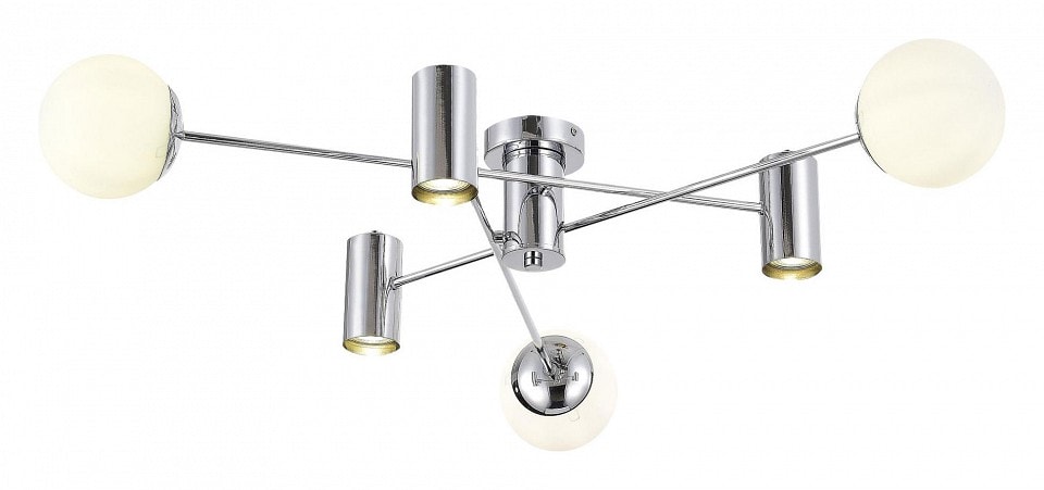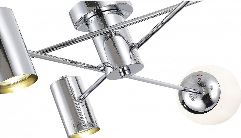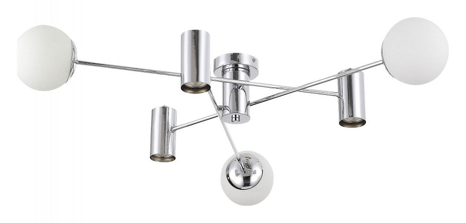Люстра выполнена в современном стиле, что делает её универсальной для различных интерьеров. Плафоны имеют сферическую форму, что добавляет изысканности и оригинальности. Обратите внимание, что лампы в комплект не входят, и вы можете выбрать подходящие по вашему вкусу с цоколем E27 или GU10.