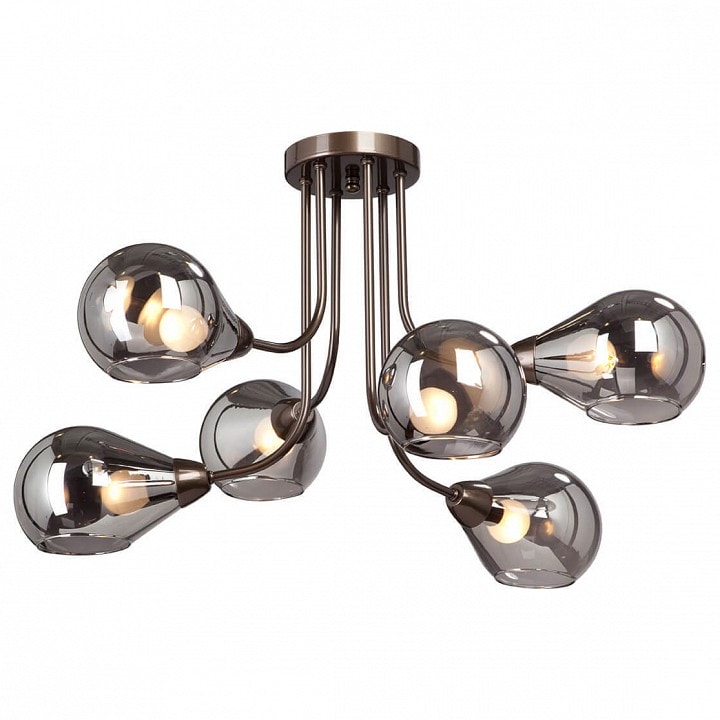 Люстра оснащена 6 плафонами, которые направлены вниз, создавая мягкое и уютное освещение. Каждый плафон имеет сферическую форму, что добавляет изысканности и гармонии в общий вид изделия. Обратите внимание, что лампы в комплекте отсутствуют, и вы можете выбрать лампы с максимальной мощностью 40 Вт и типом цоколя E14, что позволяет вам настроить освещение под ваши предпочтения.