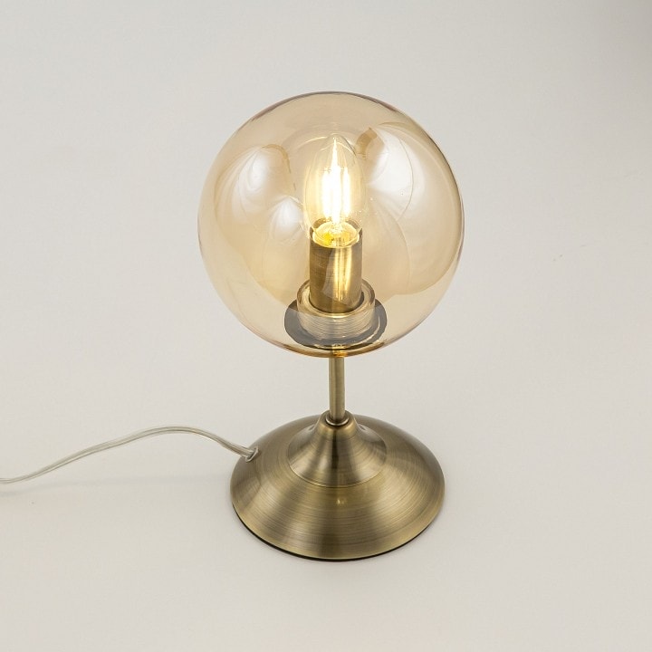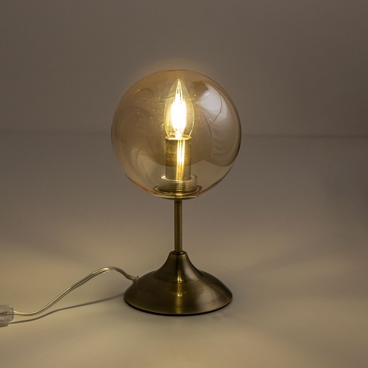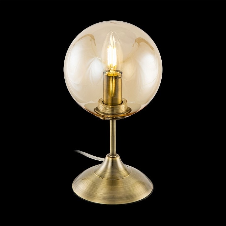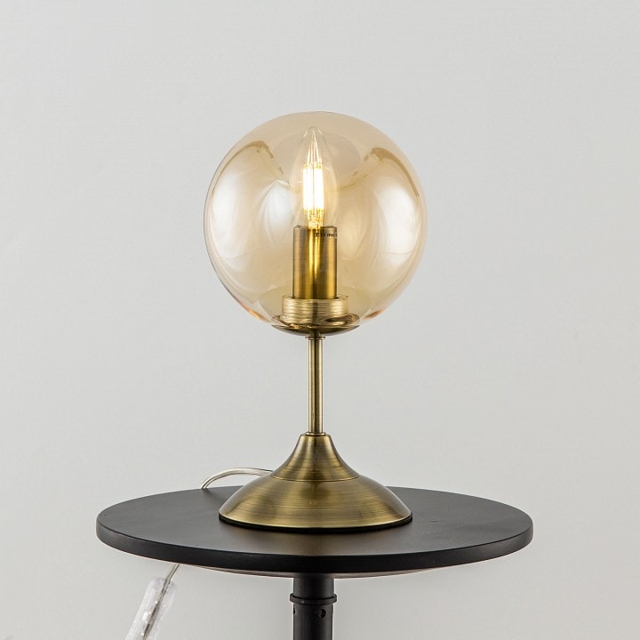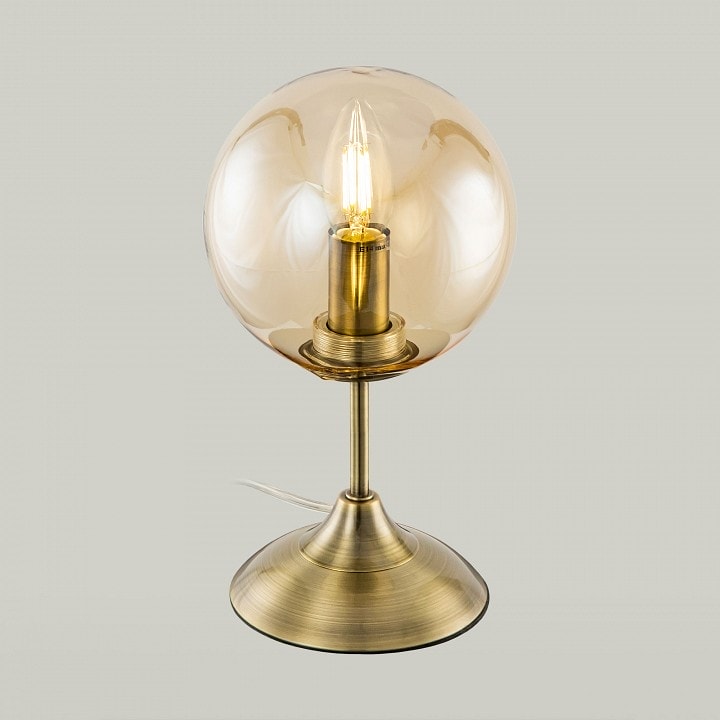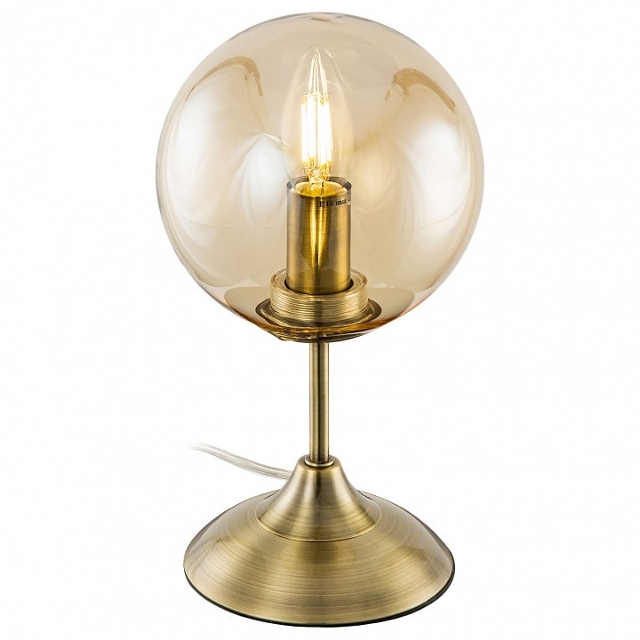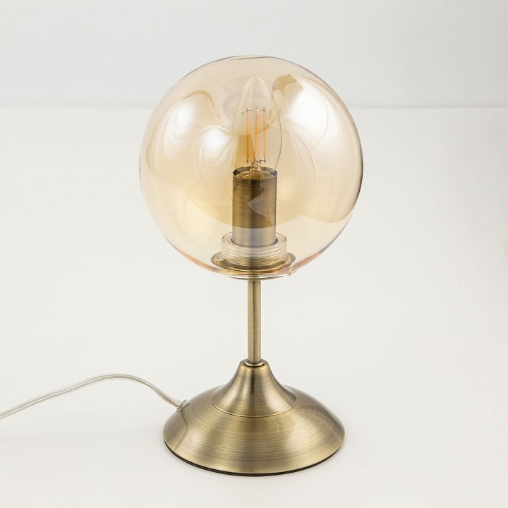 Лампа имеет диаметр 150 мм и высоту, подходящую для размещения на столе. Она оснащена одним плафоном, который направлен в стороны, обеспечивая равномерное освещение. Максимальная мощность лампы составляет 40 Вт, что позволяет использовать лампы накаливания с цоколем E14. Обратите внимание, что лампы в комплекте не идут, что дает вам возможность выбрать освещение по своему вкусу.