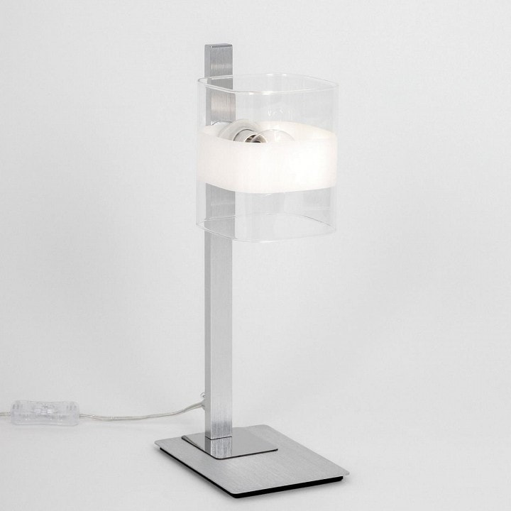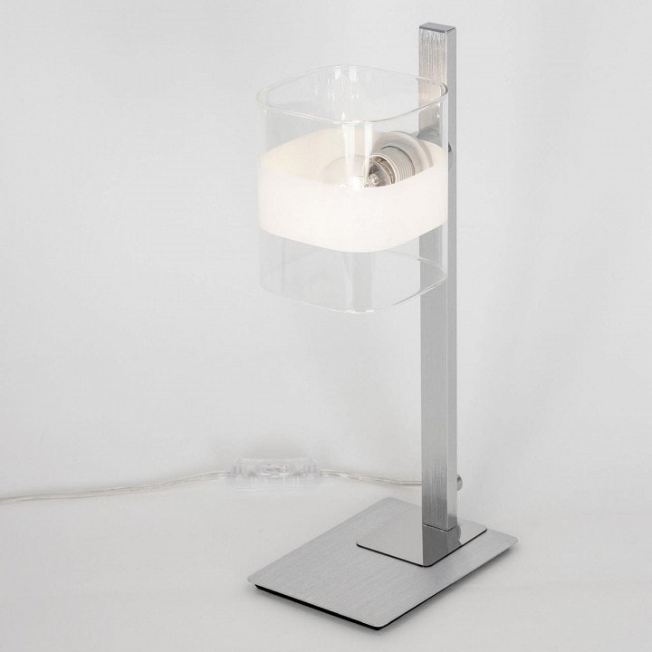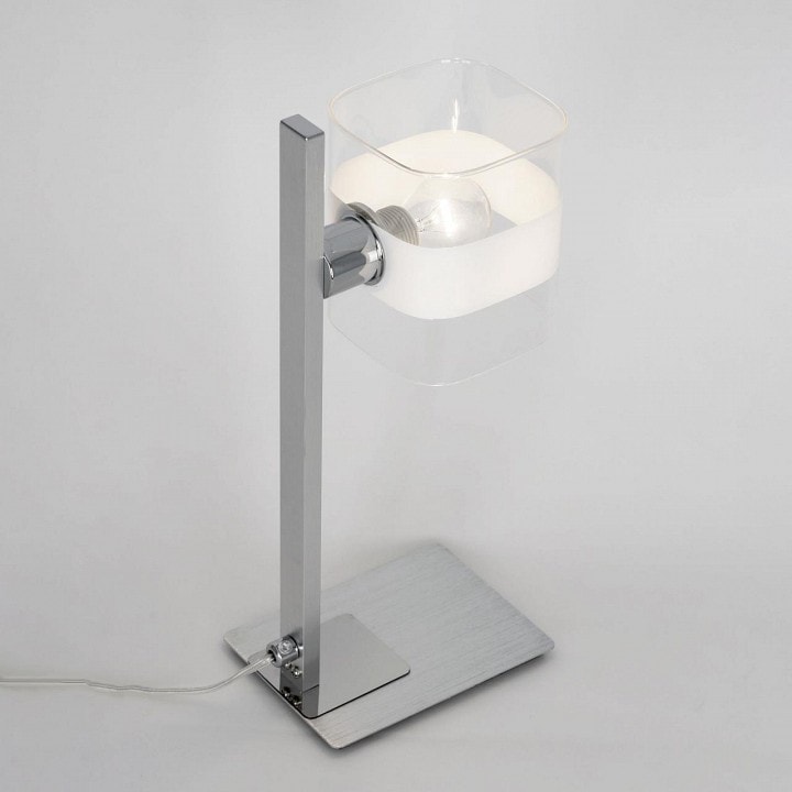 Лампа имеет высоту 345 мм и глубину 150 мм, что делает её компактной и удобной для размещения на столе. С одним плафоном, выполненным в форме квадратной призмы, она обеспечивает направленное освещение вверх и вниз, создавая мягкий и приятный свет. Максимальная мощность лампы составляет 60 Вт, а тип цоколя — E14, что позволяет использовать различные лампы накаливания для достижения желаемого эффекта освещения.