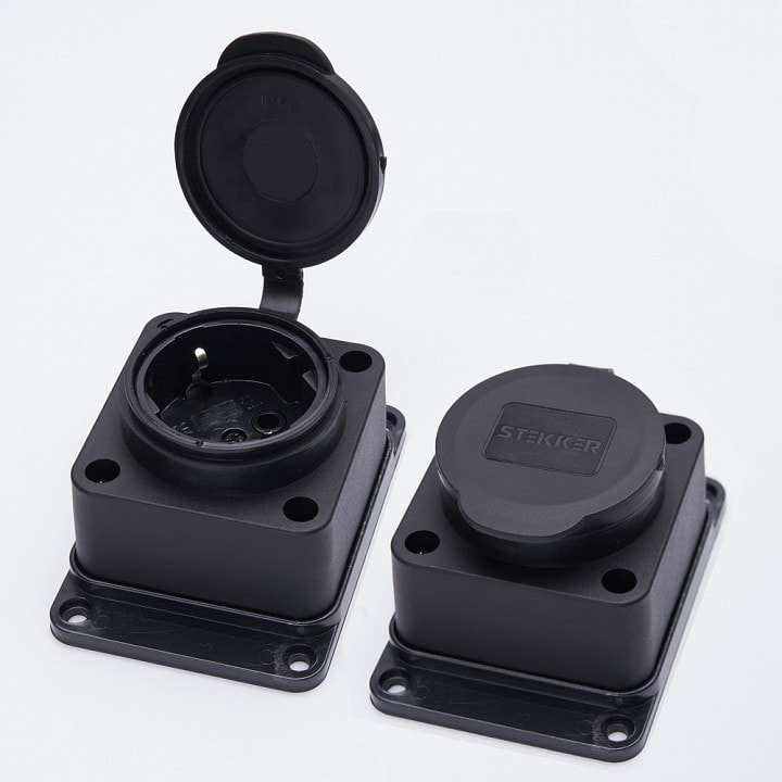 С защитой от пыли и влаги по стандарту IP-44, данная розетка идеально подходит для использования в помещениях с повышенной влажностью, таких как кухни и ванные комнаты, а также на открытых пространствах. Это делает её универсальным решением для различных условий эксплуатации.