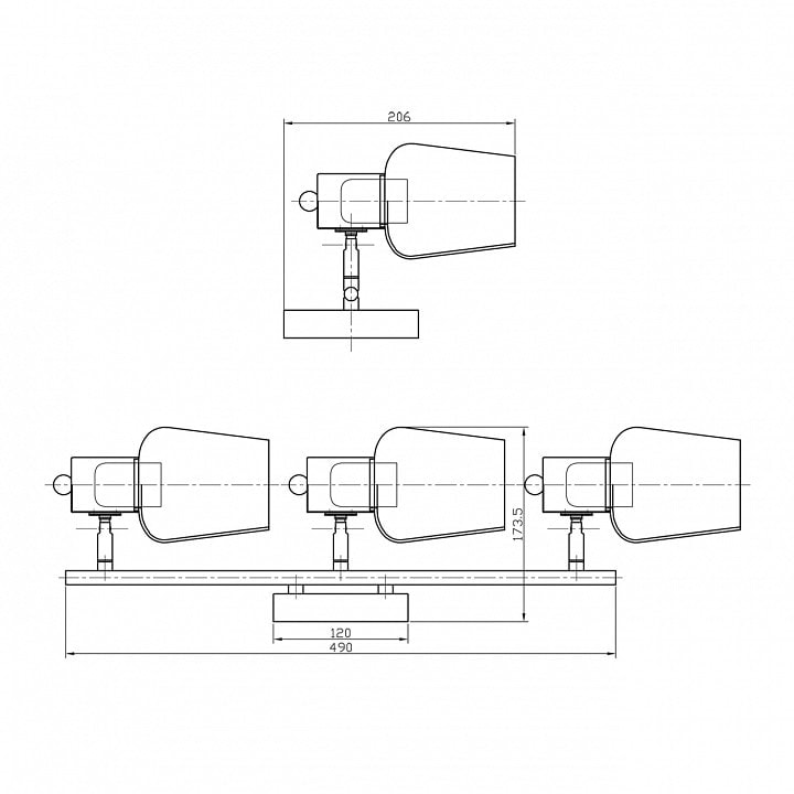 Спот выполнен в современном стиле и имеет три плафона, которые можно направлять в любое направление, что позволяет вам регулировать уровень освещения в зависимости от ваших потребностей. Глубина и выступ светильника составляют 174 мм, что делает его компактным и удобным для установки как на потолке, так и на стене.