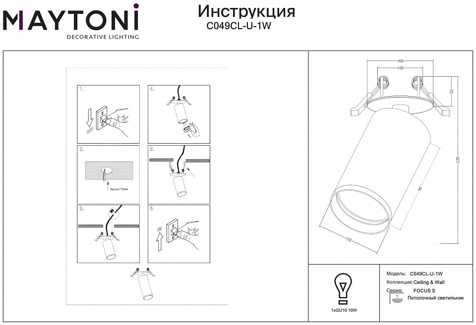 Спот Maytoni FOCUS S C049CL-U-1W: Идеальное Освещение для Вашего Интерьера