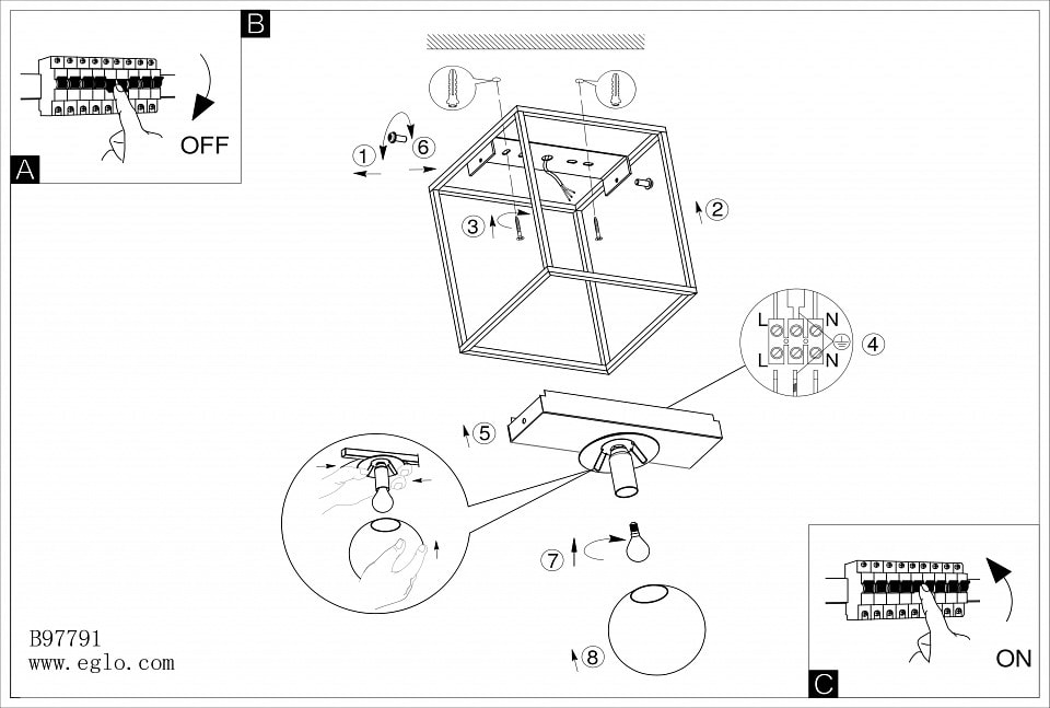 Светильник Eglo Vallaspra 97791 имеет степень пылевлагозащиты IP20, что делает его идеальным для использования в помещениях с низким уровнем влажности. Его масса составляет всего 0.9 кг, что упрощает установку и монтаж.