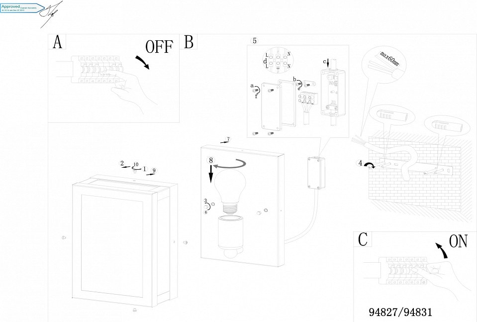 Светильник имеет глубину и выступ 100 мм, что делает его компактным и удобным для установки на стену. Он предназначен для использования с одной лампой накаливания мощностью до 60 Вт с цоколем E27. Обратите внимание, что лампы в комплект не входят, что позволяет вам выбрать освещение по своему вкусу.