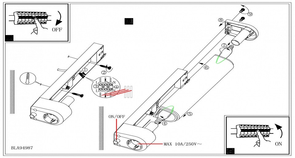 Светильник имеет степень пылевлагозащиты IP20, что делает его подходящим для использования в помещениях с низким уровнем влажности, таких как кухня. Удобный выключатель позволяет легко управлять освещением, а общая мощность в 80 Вт обеспечивает достаточное количество света для комфортного приготовления пищи и семейных ужинов.