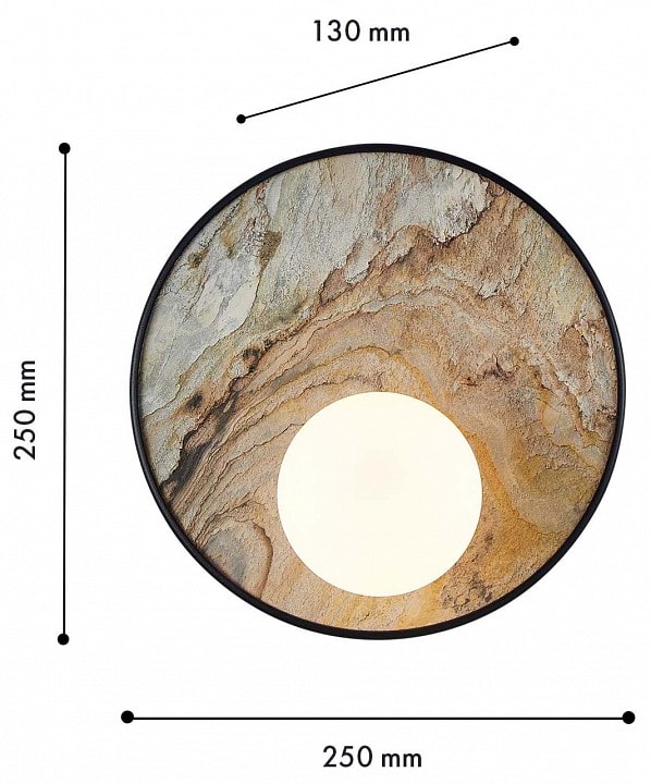 С диаметром 250 мм и высотой 250 мм, светильник имеет компактные размеры, что позволяет разместить его даже в небольших помещениях. Глубина в 130 мм и выступ в 130 мм делают его удобным для установки на стену, а максимальная мощность лампы в 9 Вт обеспечит достаточное освещение для площади до 4.5 м².