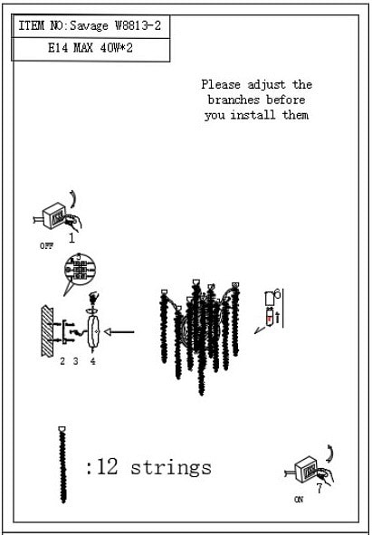 Светильник работает на напряжении 220 В и поддерживает максимальную мощность лампы до 40 Вт. В комплекте лампы отсутствуют, однако вы можете выбрать подходящие лампы накаливания с цоколем E14, чтобы создать нужное освещение. Общее количество ламп, которые можно использовать, составляет 2, что позволяет добиться яркости и насыщенности света.