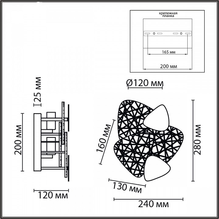 Светильник имеет глубину и выступ 120 мм, что позволяет ему гармонично вписаться в различные пространства, включая гостиную. Он оснащен двумя плафонами, которые направлены вперед, обеспечивая равномерное и мягкое освещение. Максимальная мощность лампы составляет 40 Вт, а тип цоколя — E14, что дает вам возможность выбрать лампы накаливания по вашему вкусу.